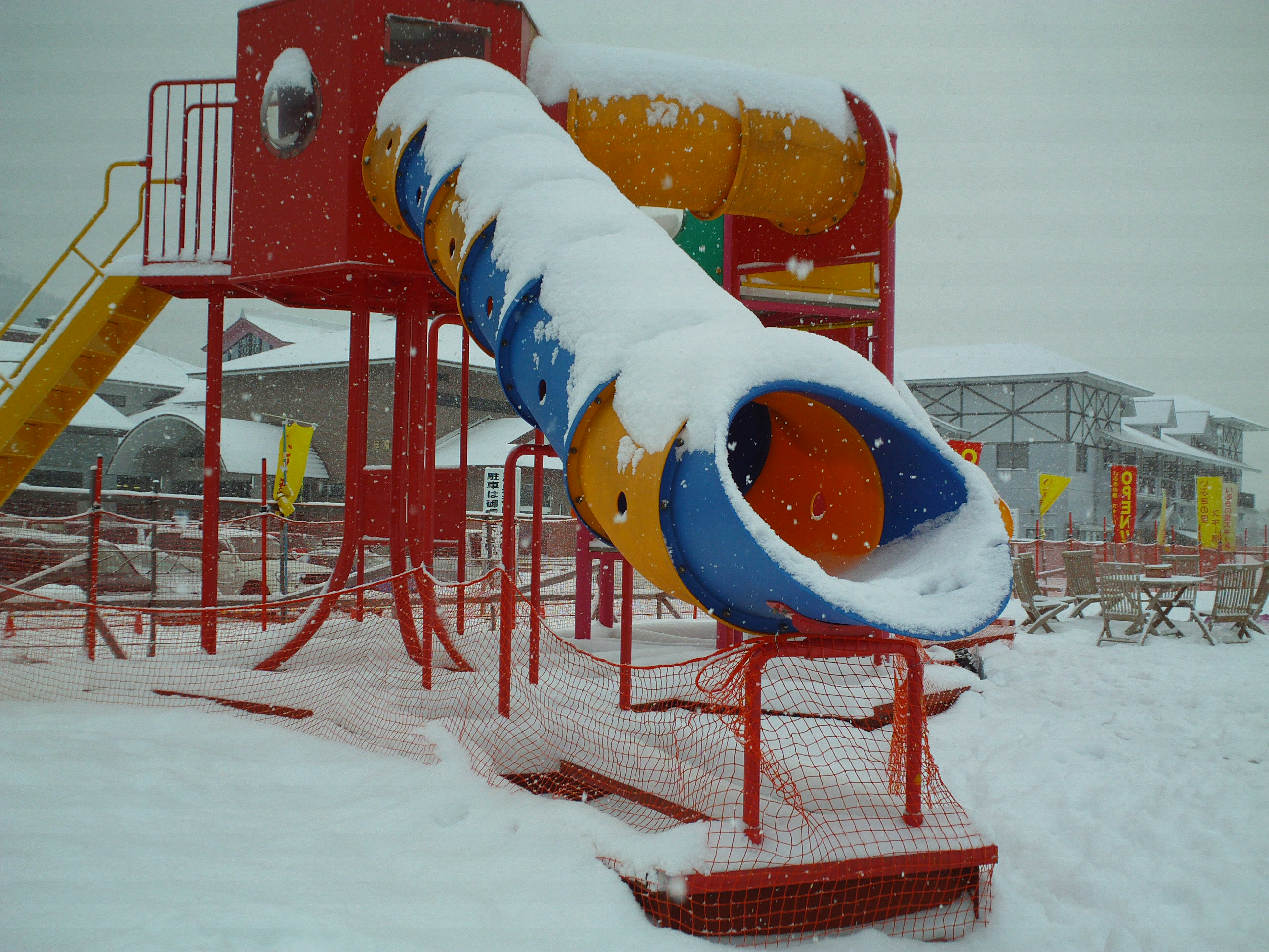 キッズパークには子供を遊ばすのに十分な積雪はあったのですが、残念ながらベルトコンベアーや一部の遊具が利用出来ない状態。