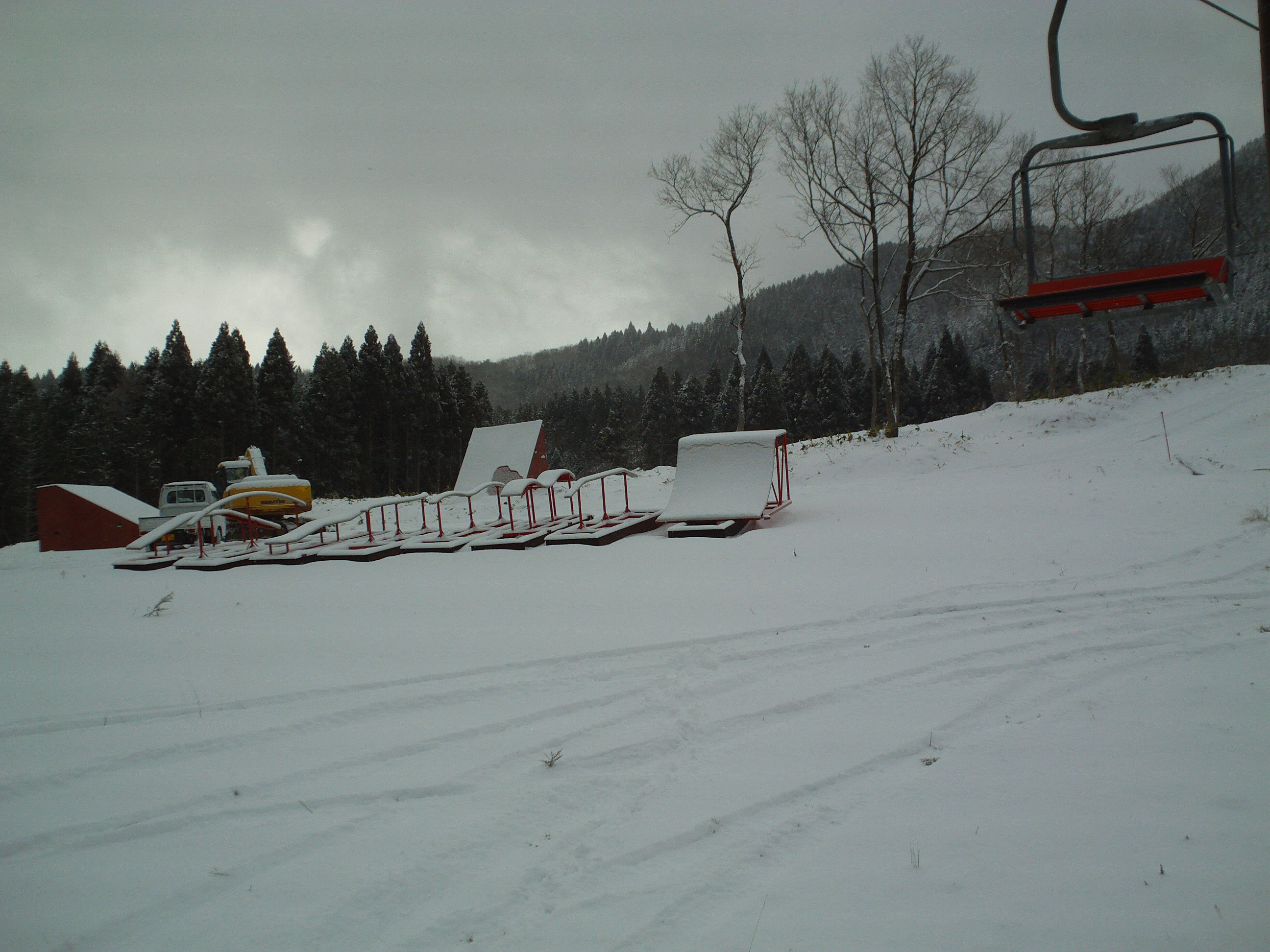 スノーパークアイテムは先週同様、未だ設置はされておりませんが、先週のゲレレポでもお伝えした巨大な台形アイテムが移動しておりました。